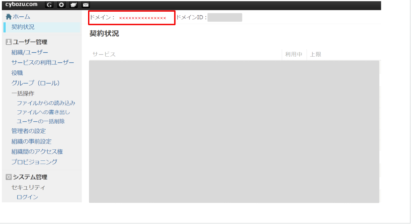 - 下図の画面へ遷移します。画面上部の赤枠内の「×××」がドメインです。