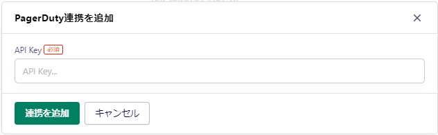 - 以下モーダルが表示されるので、API Keyを貼り付け、[連携を追加]をクリックします。