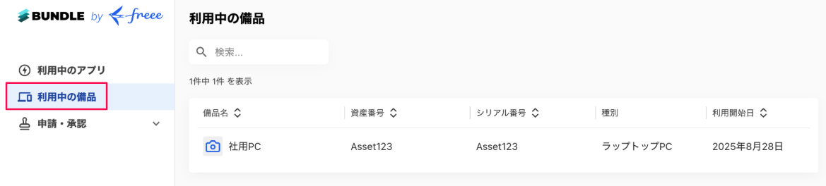 自身と紐付く備品の情報を確認できます。