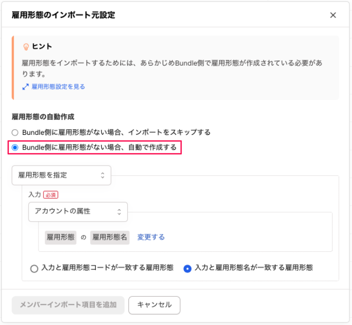 従来は部署 / 役職 / 雇用形態をメンバーインポートで取り込む場合、事前にBundle上での作成が必須となっていました。