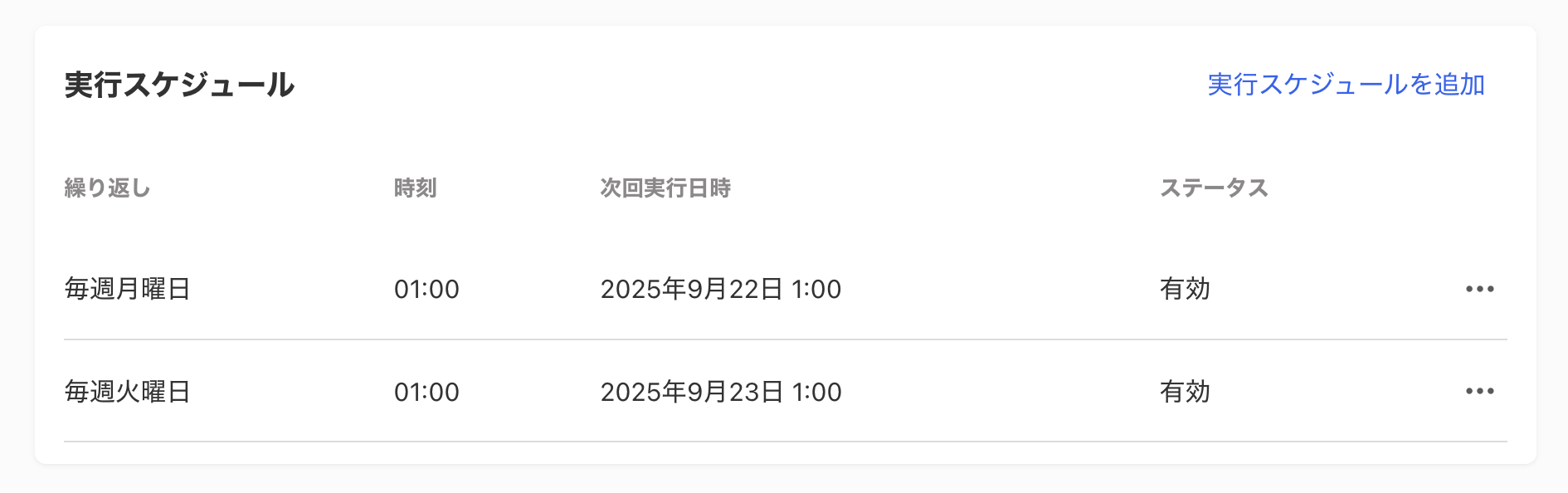 - 実行スケジュールは複数設定可能です。