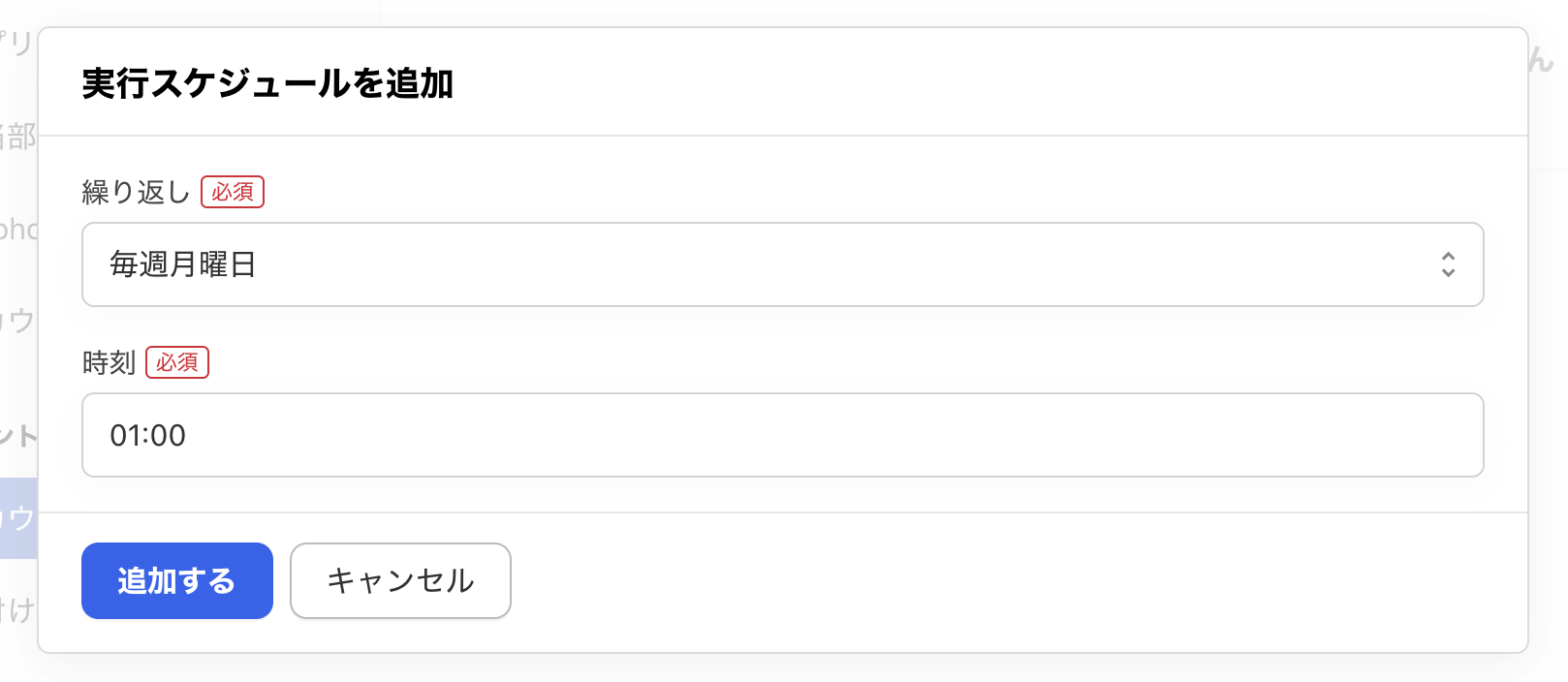 - 任意のスケジュールを設定し、[追加する]をクリックします。