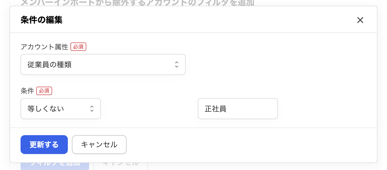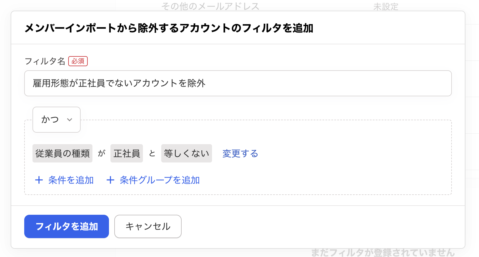 アカウント詳細において「従業員の種類」が「正社員」以外になっているGoogle Workspaceアカウントをメンバーインポート対象から除外する