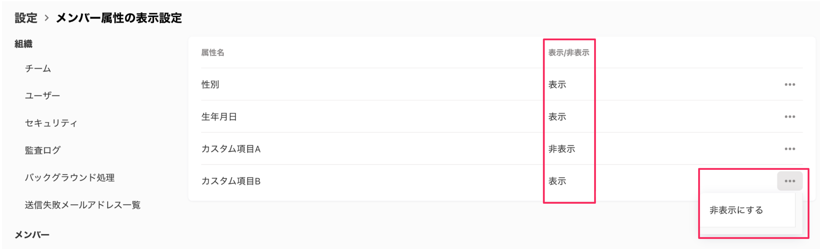 2025.10.29 リリース Bundle by freee ヘルプページ 2025年11月04日 03:50 更新 機能改善メンバー: 一部属性の表示/非表示を設定できるようになりました[設定]>[メンバー属性の表示設定]からメンバー属性の表示/非表示制御が可能になりました。解決する課題:「性別」「生年月日」およびカスタム項目の表示制御が可能となり、Bundle管理者が閲覧できるべきでない情報に対するより強固なアクセス制御が可能となりました。 検知アプリ: アプリ名での検索ができるようになりました解決する課題:特定アプリについて確認したい際の利便性が向上しました。 関連記事 2025.10.22 リリース 2025.11.05 リリース 対応アプリ・対応アクションの一覧 2025.10.01 リリース 2025.11.12 リリース