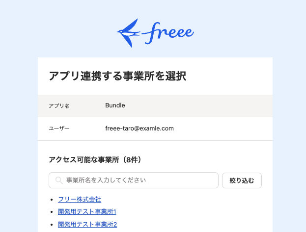 - freee会計の認証画面が表示されるので、明細の閲覧権限があるfreeeアカウントでログインします。