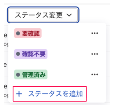 既存のステータスを編集する場合は、ステータスのドロップダウンから対象のステータスの右側にある三点リーダー >[ステータスを編集する]をクリックしてください。
