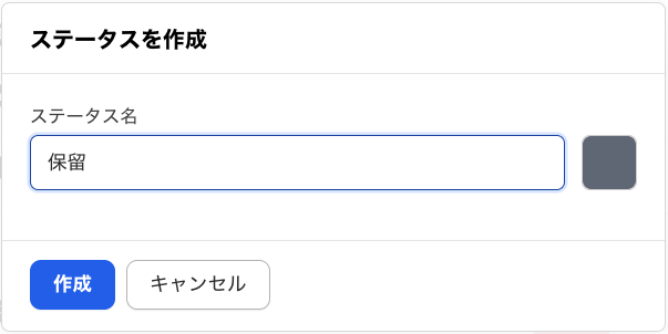 - 任意のステータス名と色を設定して[作成]をクリックします。