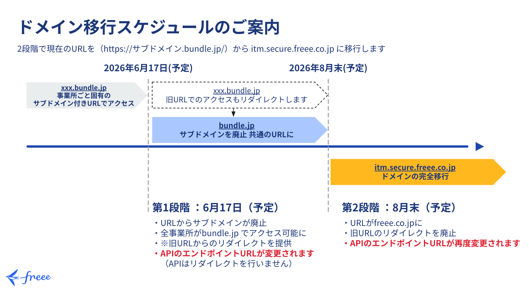 第2段階:2026年8月末予定 URLをitm.secure.freee.co.jpに移行